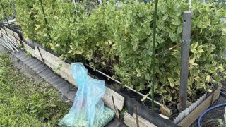 昨夜は雨もかなり降りましたが、それよりも風が凄かった。寝る時に部屋の小窓を開けていましたが、外で荒れ狂う風の音が気になり寝付けないので途中で締めてしまいました。翌朝になり庭に出ると簡易温室が強風により横に倒れ、中に入れていた野菜の予備苗が床に崩れ落ちていました。横倒しになった簡易温室を見てると農園の事が心配になり午後から様子を見に行きました▼農園では所々で支柱が傾いたり、ビニールトンネルが捲れたのも見かけましたが全体としては大きな被害は無さそうに見えます。自分の区画を覗いてみましたが、被害らしい被害は見受けられませんでした。ただ、トマトが鳥に食べられて残骸が飛び散っています。