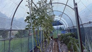 序にトマトの管理もやっておいた。何をしたかと云えば、下段の実が採り終わったら葉っぱを整理して次の段の実が地面スレスレに来るよう紐を下げている。その為にまっすぐ伸びた茎はぐにゃっと猫背になる。