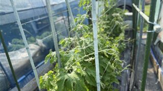 ネット張りは終わっているのですが、ネットに絡みきれず地表や通路側に蔓が溢れ出しているのです。