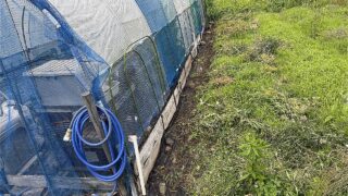 雨除けビニールの上にネットを被せておけば風に煽られビニールが破れる事が無いので、ここはしっかり押さえる事が大事です。