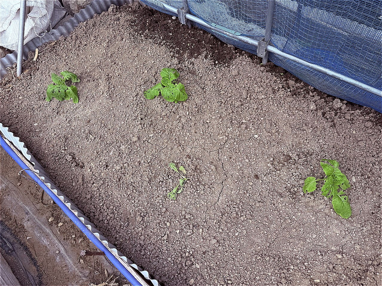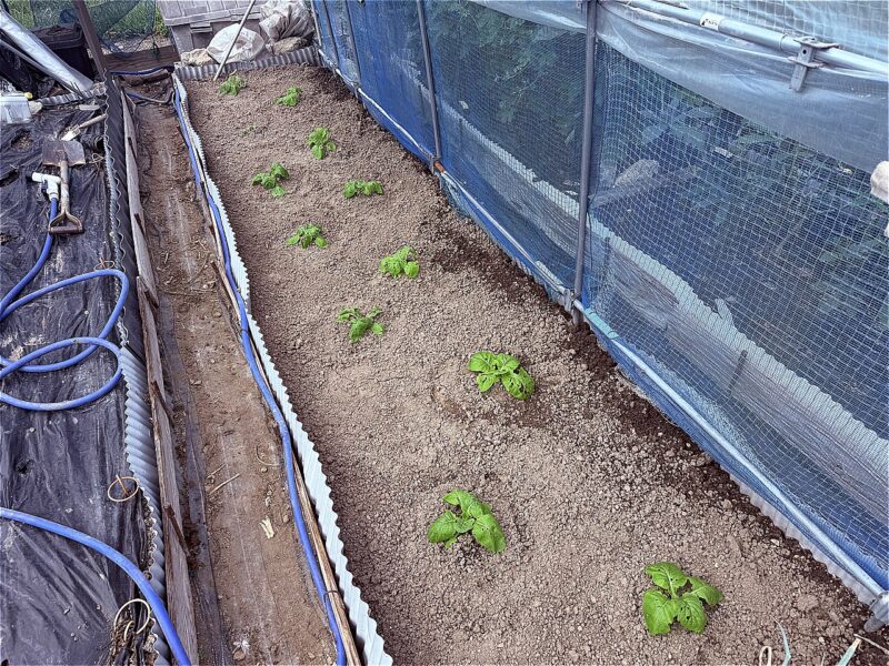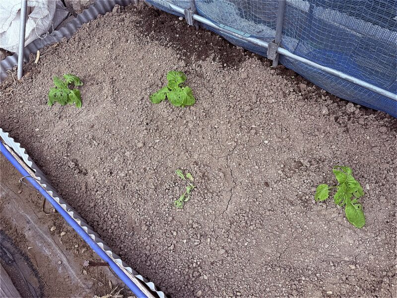 バッタはヤバいので寒冷紗を上から被せて置く事にする。