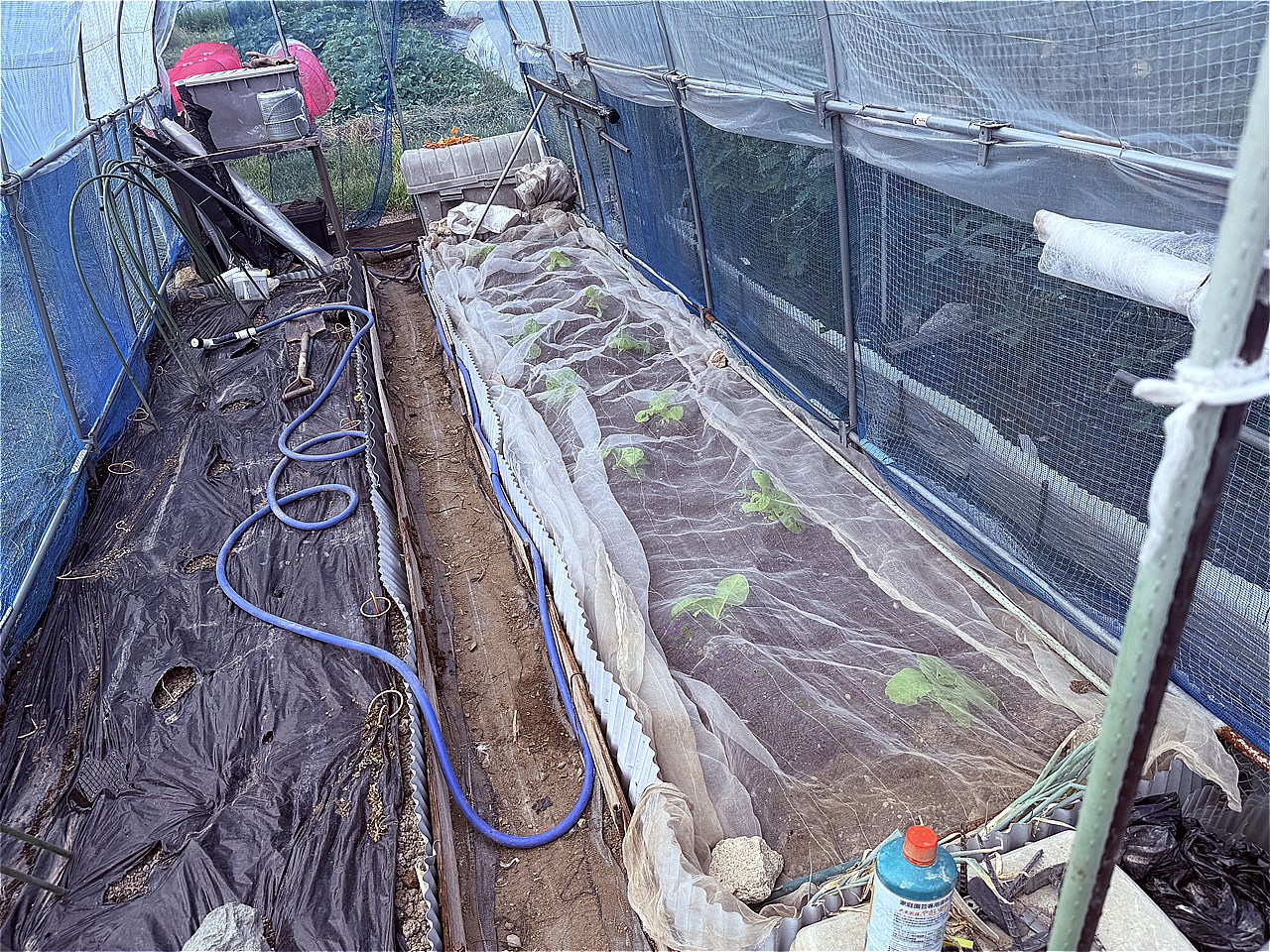 白菜は雨除けのしたなので時々降っていた雨の恩恵は受けていなかった。