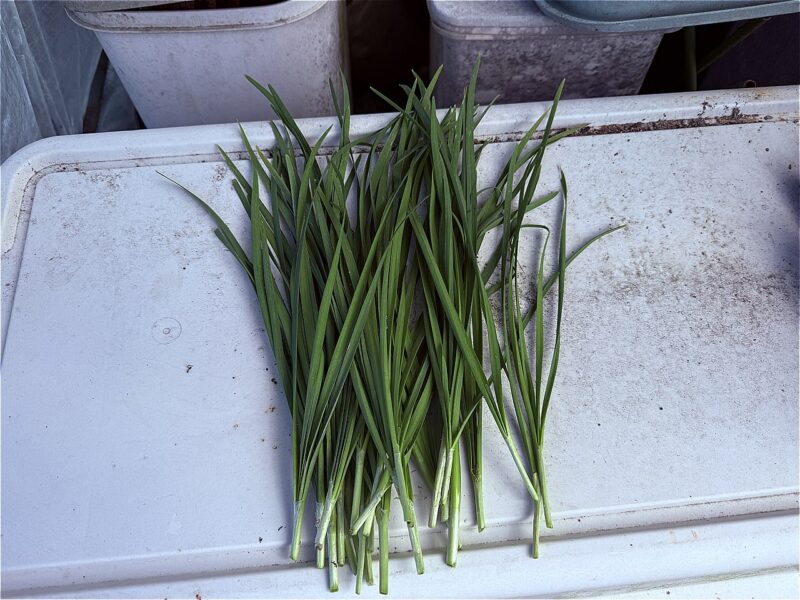 虫除けで植えていたニラが良く育っていたので収穫した。