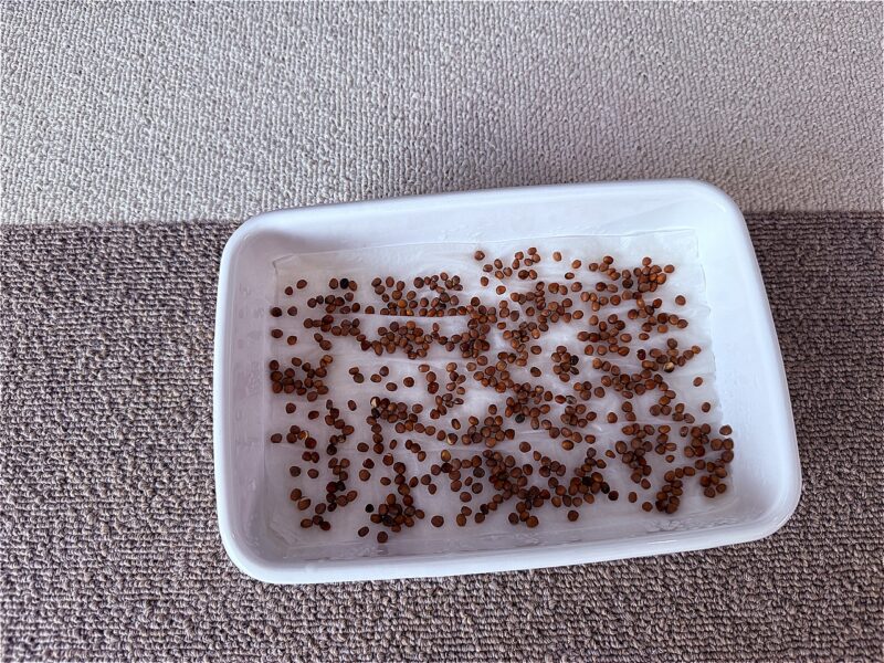 容器はキッチンで使うトレーを使っており、この写真の量で種1袋を殆ど使う。