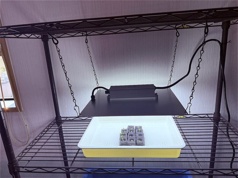 今は25%の明かりで8時間の設定にしていますが、本格的に液肥に移行すれば100%照射にしていきます。