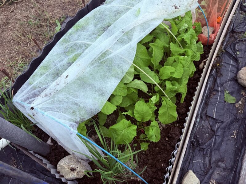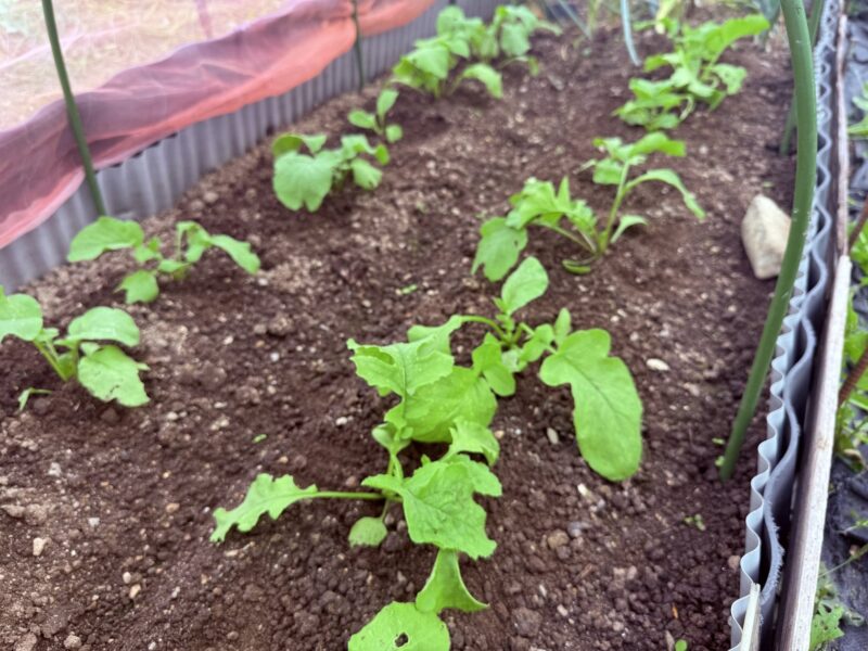 赤カブも密集してきたので5cm間隔くらいを目途に間引きを行う。