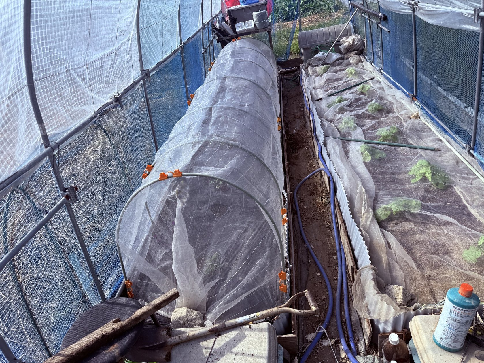 もう一度耕し、水を何度も撒いて土に水分を含ませる。