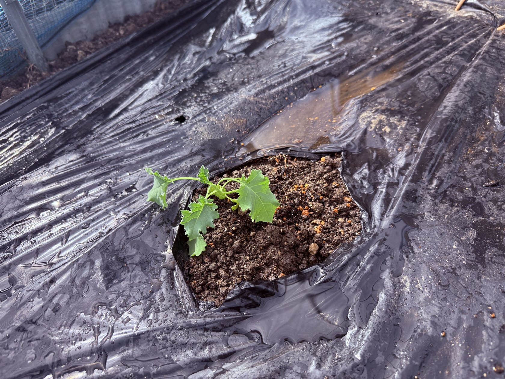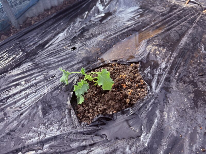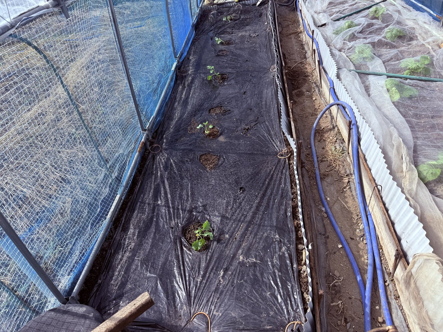 家からは6個の苗を持ってきたが、カーリーケールは余裕を持って植え付けた方が良いので5個を植付ける事にする。