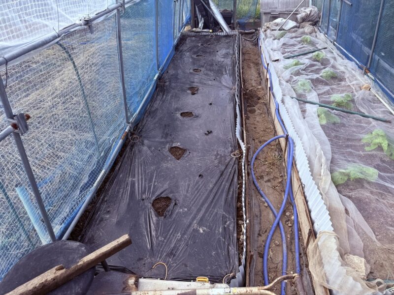 土を均してから黒マルチを掛ければ畝は完成だ。