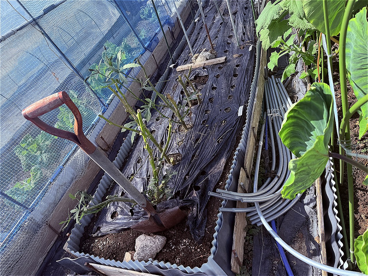 今年のオクラは実が出来なくなって来たので全ての苗を撤収する事にする。