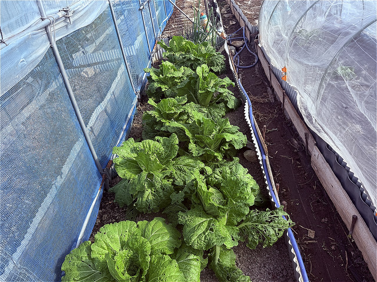 ミニ白菜は虫食いと闘いながらも何とか巻き始めている。