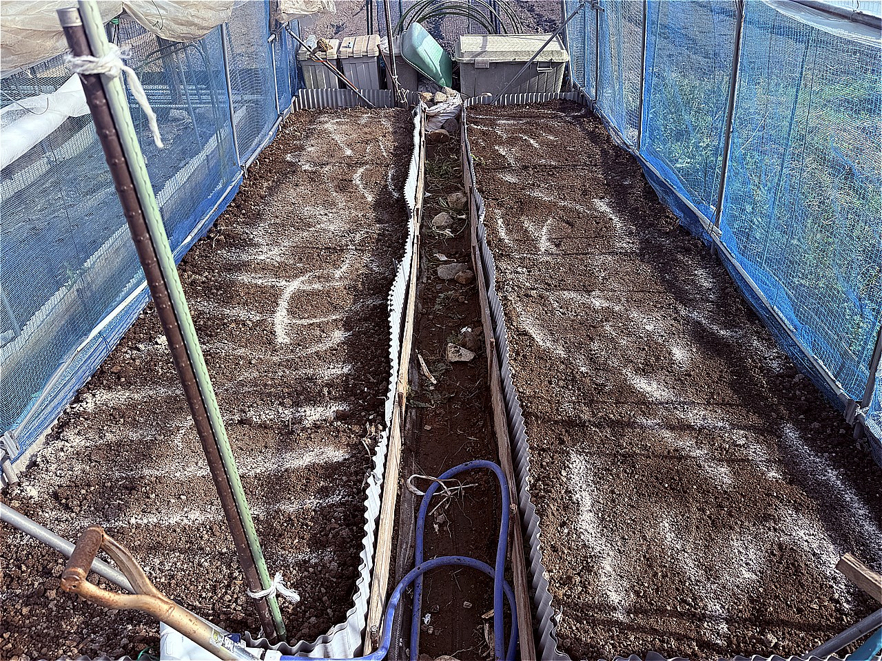 後は穴明きの黒マルチを敷けば植付けの準備は完了となるが、黒マルチは時間の関係で次回に回す。