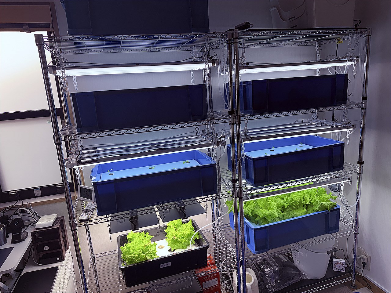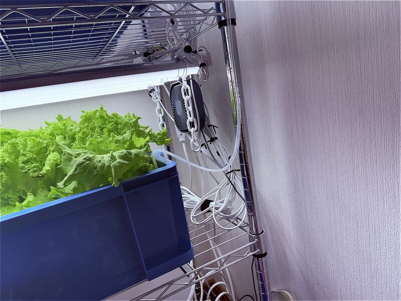 棚を作ってリーフレタスと小松菜を栽培していますが、2カ月半くらい使ってみて分かって来たのは水耕栽培で使うコンテナBOXが小さいと根が混雑してストレスを起こすみたい。